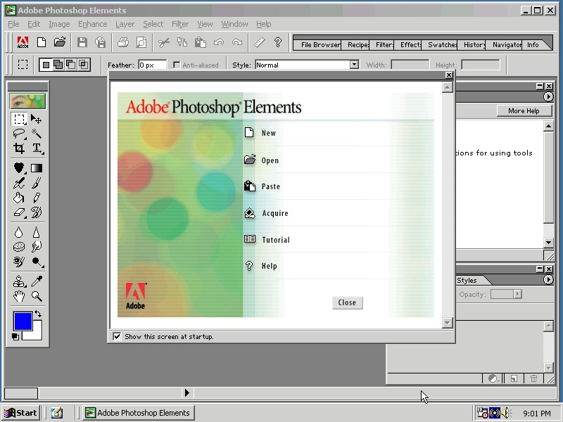เป็นเหตุผลให้ในปี ค.ศ. 2001 (พ.ศ. 2544) ทาง Adobe เปิดตัว โปรแกรม Adobe Photoshop Elements ออกมา โดยมันเป็น Photoshop ในเวอร์ชันที่ถูกลดทอนความสามารถลง โดยเหลือเอาไว้แค่เพียงเครื่องมือพื้นฐานเท่าที่จำเป็น เพื่อให้มันใช้ง่ายขึ้น เหมาะกับผู้ใช้งานทั่วไป หรือมือใหม่ที่ไม่ได้ต้องการแก้ไขภาพซับซ้อนมากนัก และราคาก็ถูกปรับให้ลดลงด้วย
