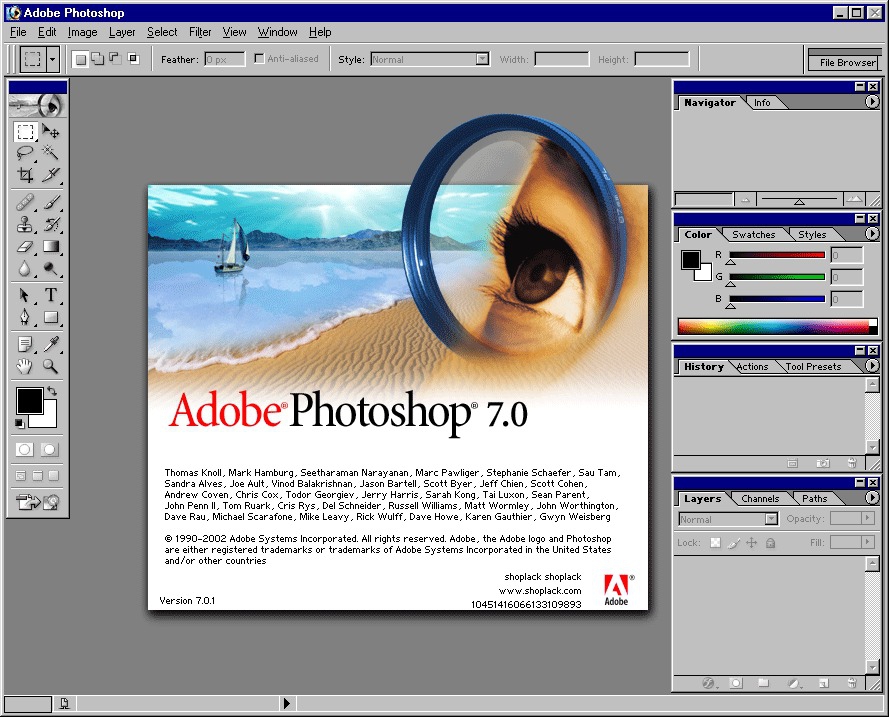 ซอฟต์แวร์แต่งรูปชื่อก้องโลกอย่าง Photoshop นั้น ถูกพัฒนาขึ้นมาเป็นครั้งแรก โดยฝีมือของสองพี่น้องตระกูล Knoll ที่ชื่อว่า Thomas Knoll และ John Knoll โดยพวกเขาสร้างมันขึ้นมาในปี ค.ศ. 1987 (พ.ศ. 2530) ก่อนที่จะขายลิขสิทธิ์การเผยแพร่ (Distribution License) ของ Photoshop ให้กับบริษัท Adibe System Inc. ในปี ค.ศ. 1988 (พ.ศ. 2531)