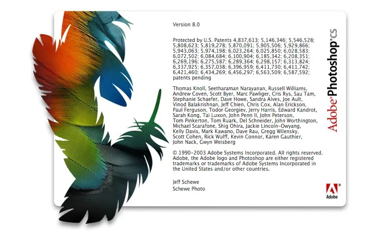 และแน่นอนว่า โปรแกรม Adobe Photoshop 8.0 ก็จะถูกรวมไว้ใน Adobe Creative Suite ด้วย โดยใน Photoshop เวอร์ชันนี้ได้มีความสามารถที่มีประโยชน์ถูกเพิ่มเข้ามาหลายอย่าง เช่น สามารถตรวจสอบรูปธนบัตรได้ เพื่อป้องกันไม่ให้ผู้ใช้ทำการตกแต่ง และพิมพ์ธนบัตรปลอมออกมา