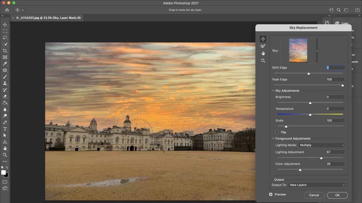 โปรแกรม Adobe Photoshop CC 2021 มีการอัปเดตเครื่องมือที่น่าสนใจเข้ามาหลายตัว ลูกเล่นแรกก็จะเป็น "Sky Replacement" เครื่องมือที่ช่วยในการแทนที่ท้องฟ้าในรูปด้วยท้องฟ้าที่ต้องการได้อย่างรวดเร็ว